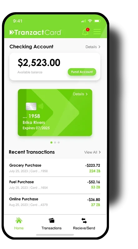Your bank card comes with your TranzactCard Account, a banking account like the checking accounts traditional banks offer. To use your bank card, you’ll need to deposit funds into your account.
